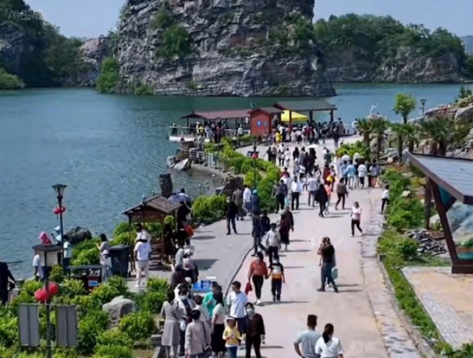 七峰湖,前來(lái)玩的游客是平日的好幾倍
