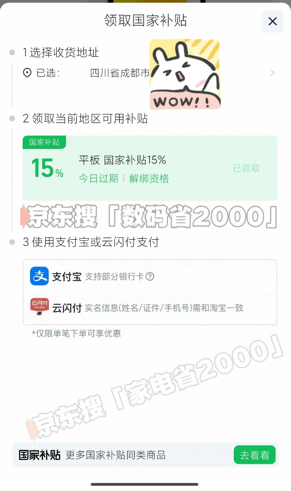 家電國補(bǔ):在京東APP搜索「家電省2000」,進(jìn)入補(bǔ)貼專區(qū)領(lǐng)取資格,單件商品最高可立減2000元;